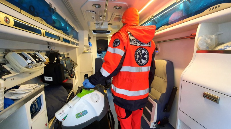 Urządzenie jest proste w obsłudze, dokonuje szybkiej dezynfekcji zarówno ambulansów jak i pomieszczeń, dezynfekuje trudno dostępne miejsca.