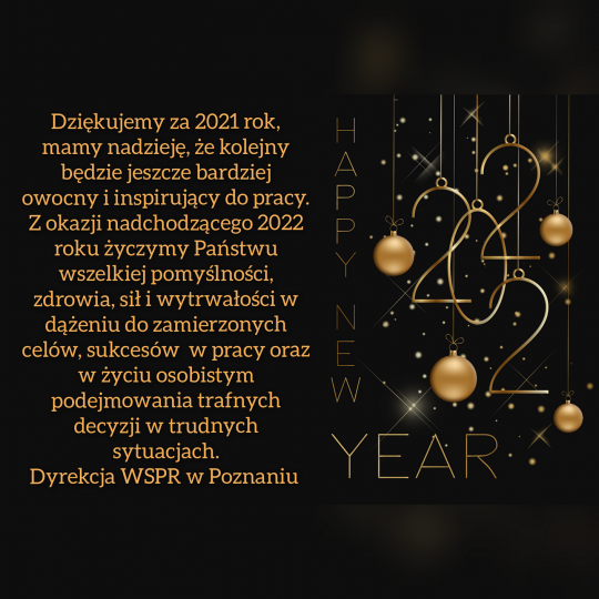 Wielkimi krokami zbliżamy się do rozpoczęcia Nowego Roku, z tej okazji składamy najserdeczniejsze życzenia.